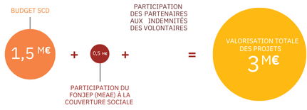 Si l’on considère l’ensemble des financements liés aux projets soutenus par le SCD, la valorisation totale de ces projets de volontariat (hors frais spécifiques du projet) s’élève à 3 millions d’euros.