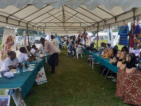 Notre volontaire ESSOR Martine et Théoneste à la Foire sociale de Brazzaville.